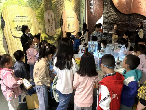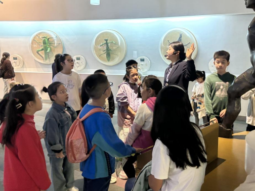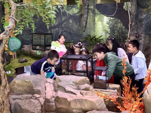 如果说“煤海之光”让孩子们感受到了地球的厚重,那“昆虫王国”展厅则让他们沉浸在了微观世界的灵动之中。一进展厅,各种昆虫标本便吸引了孩子们的目光。墙上、展柜里,悬挂着各种各样的昆虫——有美丽的蝶蛾、奇特的甲虫、勤劳的蜜蜂等,还有好玩的互动游戏以及最吸睛的“昆虫秘境”活体养殖区,孩子们一边看一边听,在讲解老师的讲述中,对生命的神奇有了新的认识。