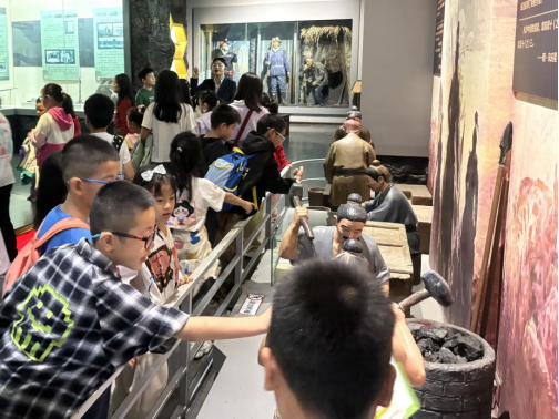 活动从自然展馆的“煤海之光”展厅开始。一开始,孩子们就被各种生动的展品和复原场景深深吸引,从远古森林的叹息到地心深处的涅槃,大家跟随讲解老师亲自揭开煤炭形成之谜,还在模拟矿井中见证了先辈如何用血汗点亮万家灯火。小朋友们踊跃提问,一个个天真的问题,充满了对地球奥秘的向往。通过参观,他们不仅了解了煤炭作业者的艰辛与危险,更懂得了要珍惜地球上的自然资源。