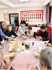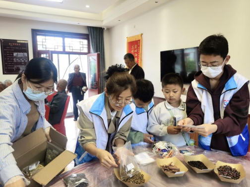 卫生评比活动结束后,进入了充满温馨气息的手工制作环节——制作助眠香包。志愿者们围坐在一起,认真聆听工作人员讲解,将艾草、陈皮等药材装入布袋,系上彩绳,不一会儿,一个个造型别致、散发着淡淡清香的助眠香包就制作完成了。孩子们捧着自己亲手制作的香包,主动送到老人手中,并轻声说道:“爷爷奶奶,这个香包可以帮助你们睡得更香,祝您身体健康!”一个个饱满的香包,不仅寄托了安眠好梦的祝愿,更缝进了月圆人团圆的吉祥寓意。