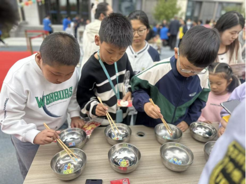 除了静雅的手作与诗词,活动现场还设置了充满欢声笑语的游戏环节。 “投壶” 游戏,让大家体验了一把古代文人的娱乐方式。孩子们屏息凝神,瞄准、投掷,每当有箭矢投入壶中,便引来一阵欢呼,仿佛穿越回那个礼乐交融的时代。在 “吹乒乓球” 区,考验肺活量和技巧的时刻到了!小朋友们鼓起腮帮,小心翼翼地将乒乓球从一个水杯吹向另一个,紧张又刺激的表情逗得家长们哈哈大笑。“夹弹珠” 游戏,考验的则是大家的耐心与技巧,也是对手眼协调能力的一大挑战,无论是孩子还是家长,都全神贯注,现场充满了“加油”声和成功的雀跃。