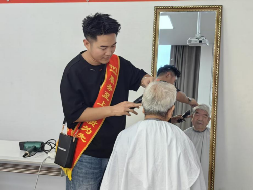 义剪区同样人气满满,志愿者理发师们技艺娴熟、耐心周到,细致地询问每一位老人的需求。伴随着清脆的剪刀声,老人们原本有些花白、凌乱的头发变得清爽利落,精神面貌也随之焕然一新。看着镜中整洁的自己,老人们脸上洋溢的笑容,是对志愿者们最好的赞美。
