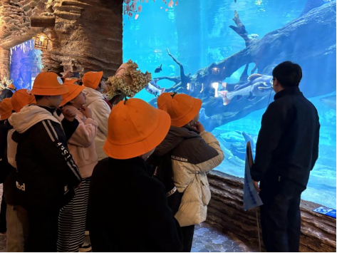 抵达西安后,研学的画卷正式展开:在华夏文旅海洋世界,灵动的海豚跃出水面划出优美弧线,色彩斑斓的热带鱼在水中穿梭,同学们凝视着玻璃幕墙后的奇妙世界,认真记录着海洋生物的习性,在互动问答中解开海洋生态的奥秘。