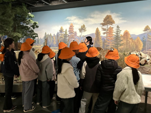在陕西自然博物馆,同学们开启了沉浸式探索之旅:贝林馆内栩栩如生的动物标本让人仿佛置身广袤原野,直观感受不同地域的生态风貌;穹幕电影带来震撼视听体验,将自然奇观尽收眼底;在“蝶中谍”科学探索活动中,大家亲手操作显微镜,细致观察蝴蝶翅膀鳞片的精妙结构,在实践中解锁生命科学的奥秘,也搭建起系统的自然认知框架。