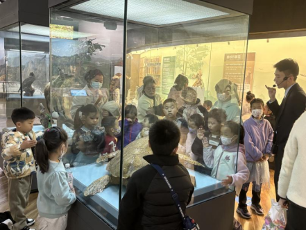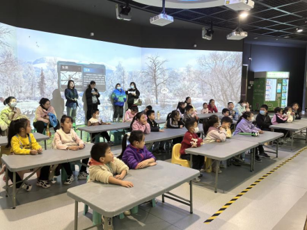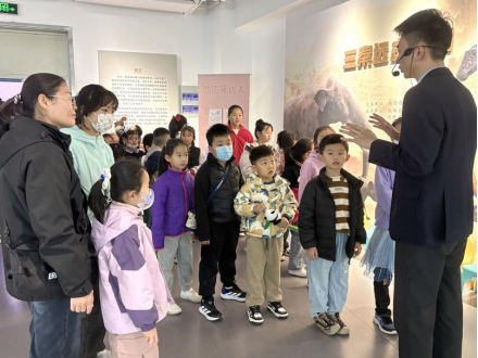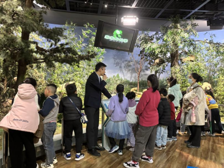 从遥远的远古时代归来,我们来到了秦岭展厅,郁郁葱葱的仿真植被、灵动逼真的动物模型,瞬间将孩子们带入了这座“生物基因库”。金丝猴在树枝间“跳跃”,羚牛在草丛中“休憩”,朱鹮展开洁白的翅膀仿佛正要起飞……孩子们沿着展厅的路线缓缓前行,认真观察着秦岭特有的动植物,了解到秦岭作为中国南北地理分界线的重要意义,以及它如何孕育和保护着众多珍稀物种。讲解员用生动有趣的语言,讲述着秦岭生物与生态环境的密切关系,让孩子们懂得了保护自然、守护家园的重要性。
