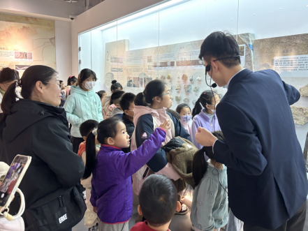我们的探秘之旅从神秘的远古生物展厅开始。一走进展厅,仿佛瞬间穿越到了亿万年前的地球。近300件珍贵标本,涵盖三叶虫、珊瑚、恐龙足迹、哺乳动物头骨等代表性展品,孩子们忍不住发出阵阵惊叹。他们睁着好奇的眼睛,围着展柜叽叽喳喳。“这是三叶虫吗?纹路好清晰!”一个小朋友指着化石发出疑问。讲解员用趣味语言科普着生物演化故事,孩子们听得入迷,满心都是对远古世界的好奇与向往。近300件珍贵标本就像一个个打开远古秘密的钥匙,让孩子们在触摸、观察、倾听中,感受到了生命的神奇与地球的变迁。